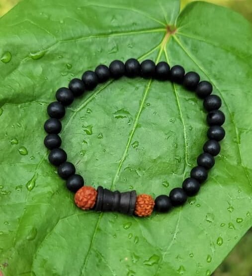 Karungali Bracelet – 6mm Rudraksha & Damaru