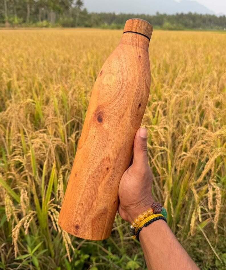 Copper Teak Wood Water Bottle-950ml