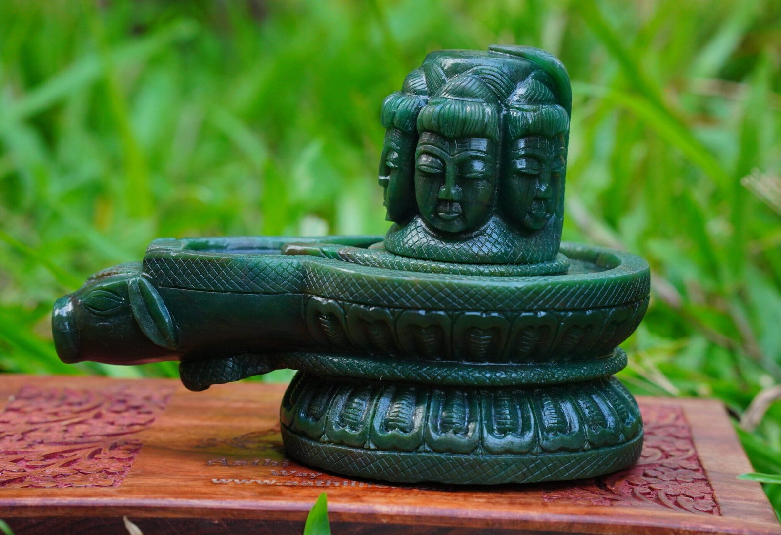Green Jade Panchmukhi Shivalinga statue-3.44kg(6inch)