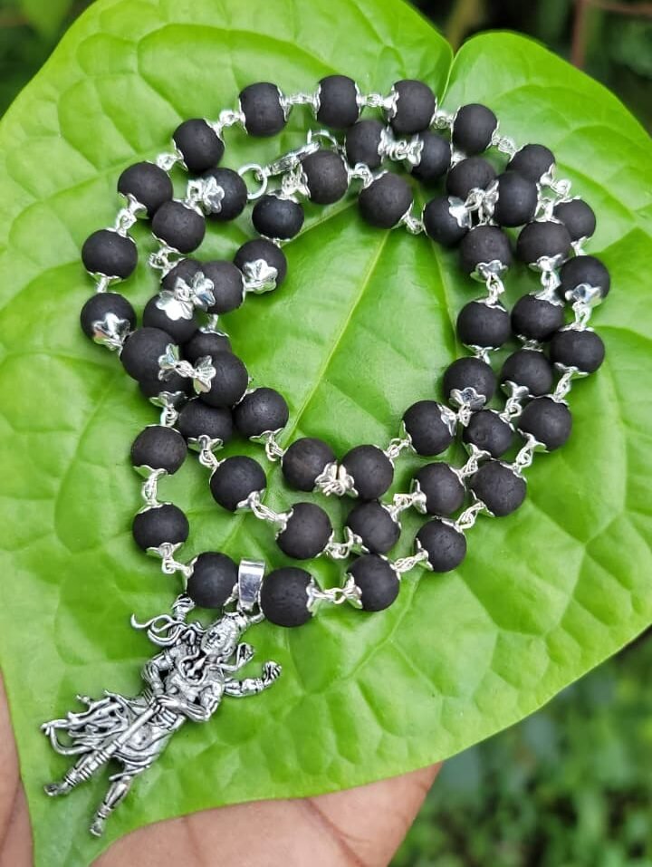 / Karungali German Silver Mala With Shiva Dollar – 8 MM-TYPE C