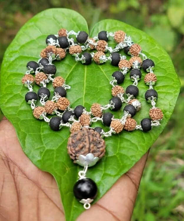 Karungali & Rudraksha German Silver with 2set Dollar-7mm