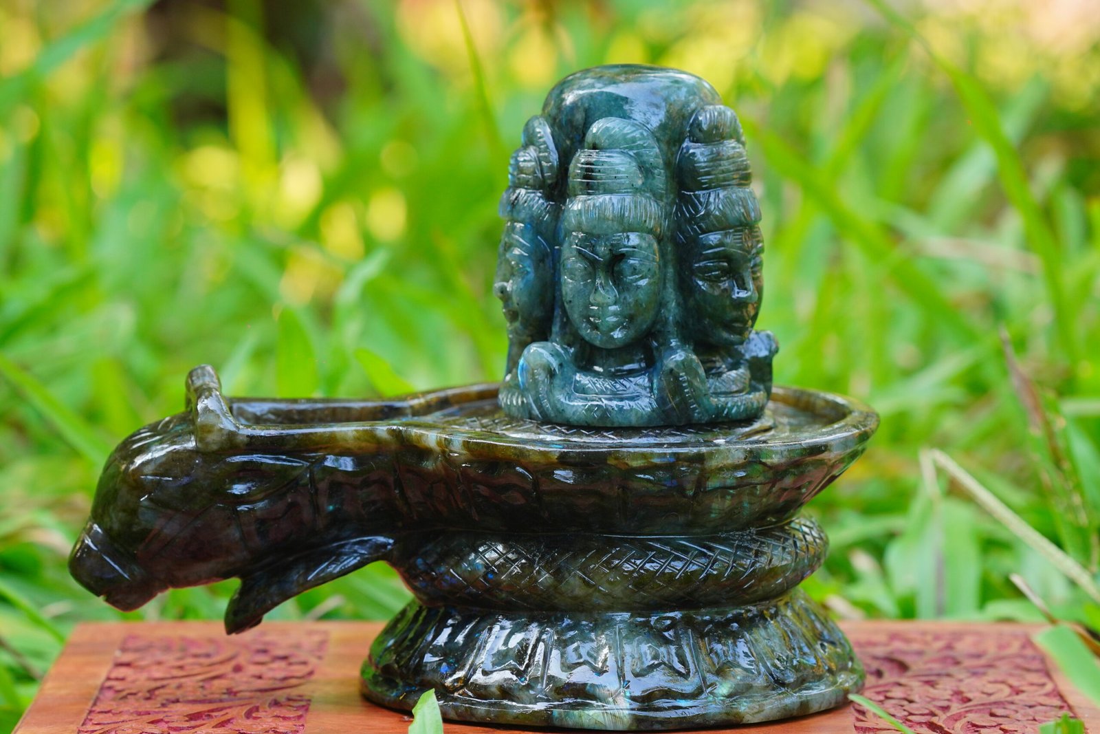 Labradorite Panchmukhi Shivalinga statue-3.63kg(7inch)