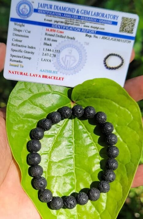 A lava stone bracelet harnesses the grounding and calming energies of volcanic rock. It is prized for its ability to absorb essential oils, acting as a natural diffuser of aromatherapy benefits. Lava stone promotes stability and strength during times of change, enhancing resilience and courage. It is believed to provide emotional grounding and balance, calming the mind and dissipating anger and negativity. Lava stone also aids in shedding unwanted emotions and attachments, promoting clarity and focus. Physically, it is thought to aid in relieving stress and tension, as well as supporting the body’s natural healing processes. Wearing a lava stone bracelet brings grounding, strength, and emotional well-being.