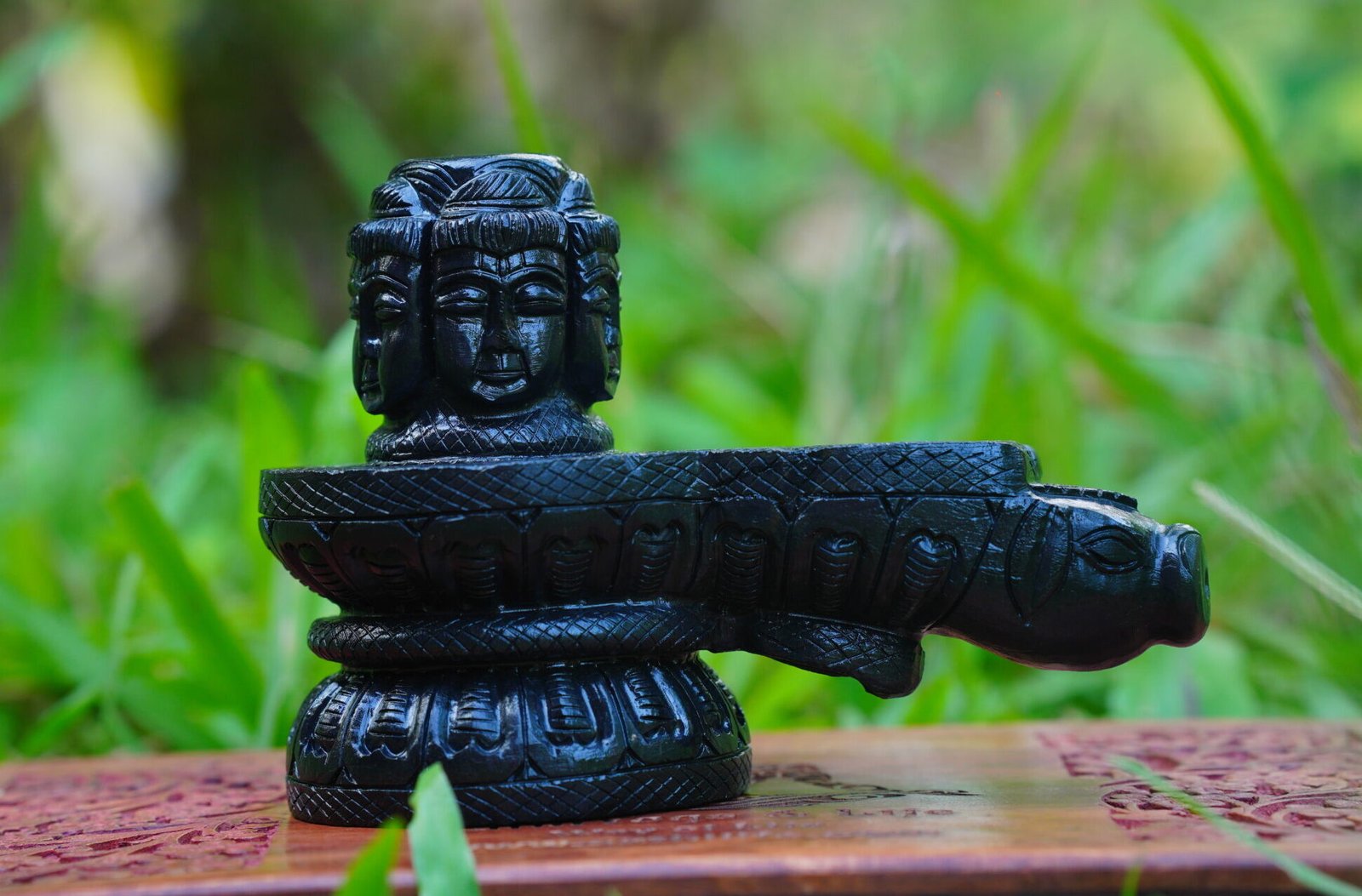 Natural Black Jade Panchmukhi Shivalinga statue-1.5kg(4.8inch)