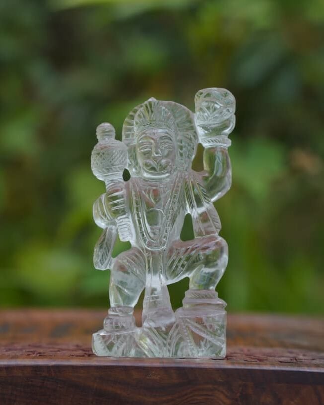A Spatika (clear quartz) statue of Hanuman is believed to bring strength, protection, and positive energy.
