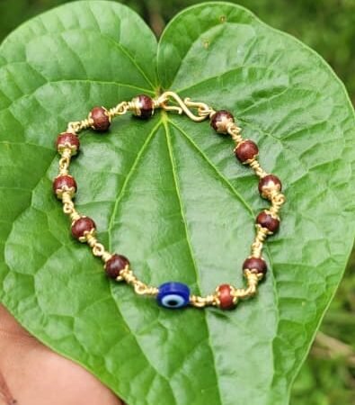 Red Sandalwood Impon(panchaloha) with Evil Eye Bracelet-6mm