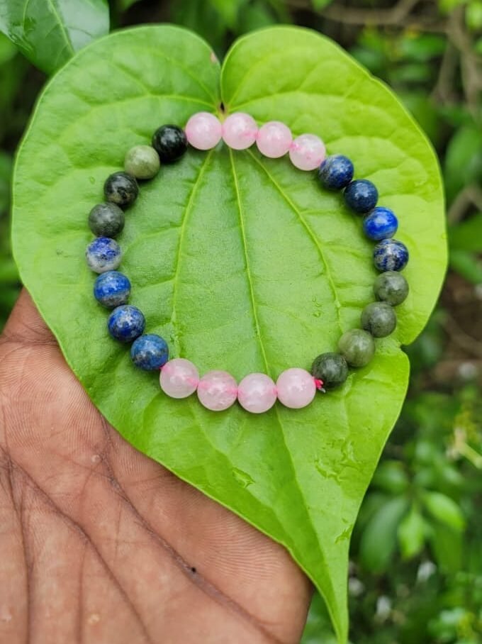 Rose quarts,Lapis Lazuli with Green Moss Bracelet (type B)