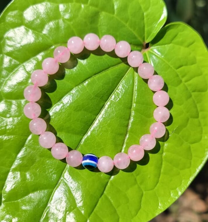 Rose Quartz with evil eye Bracelet 8mm