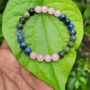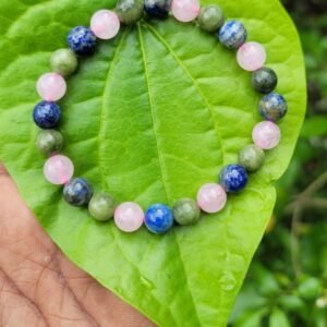 Rose quarts,Lapis Lazuli with Green Moss Bracelet (type A)
